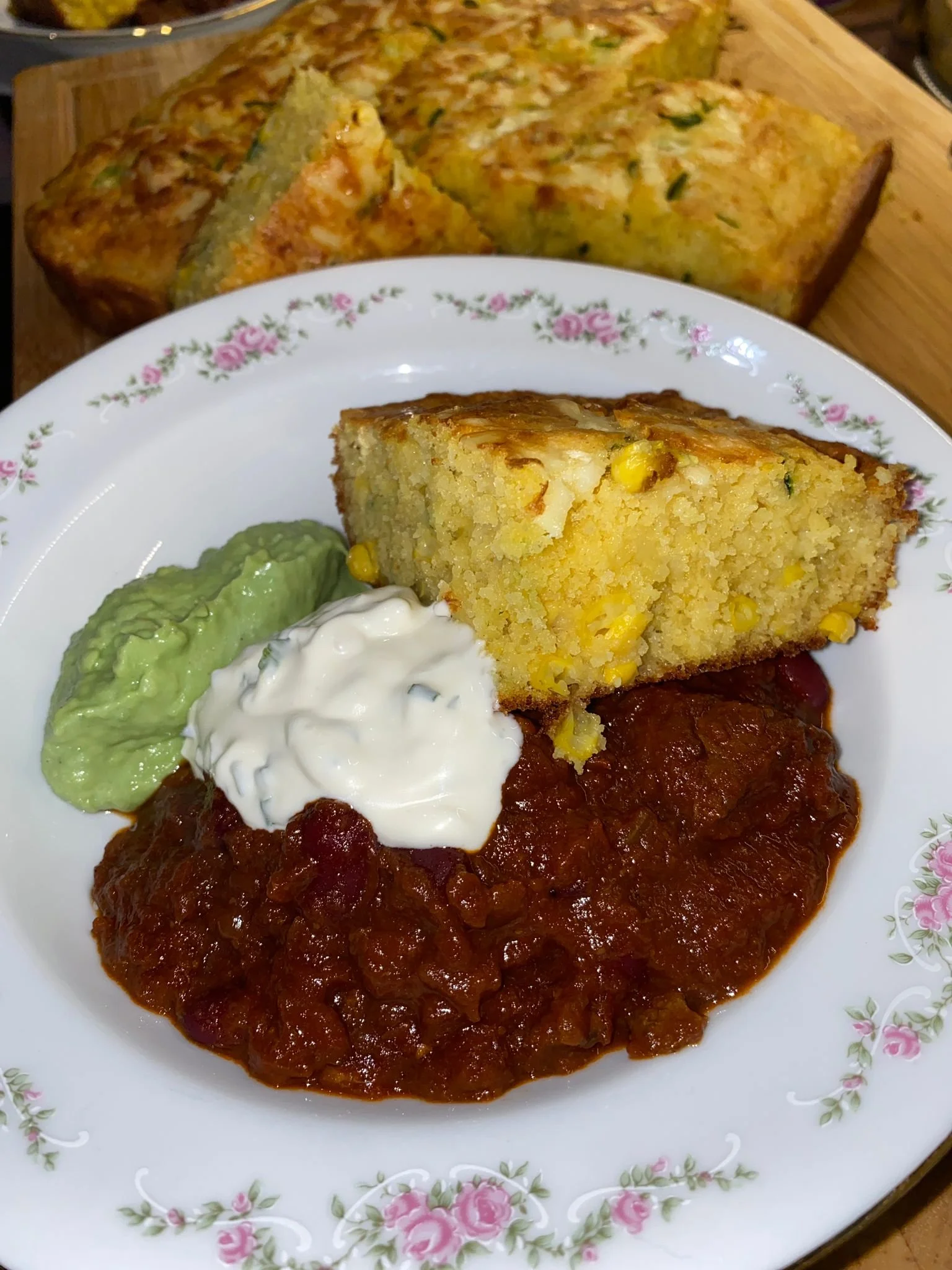 Warming chipotle tomato soup with leftover warmed cornbread, perfect for such a cold day