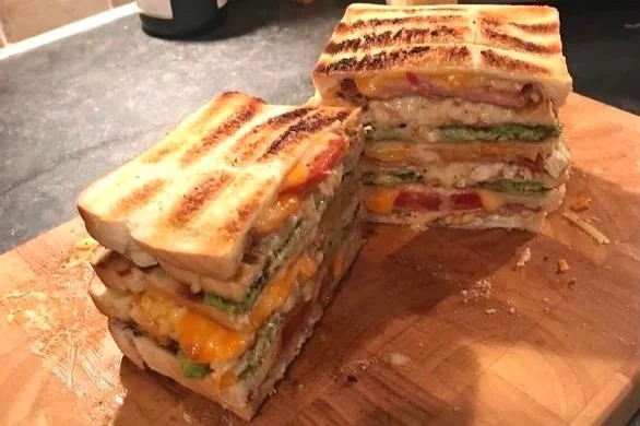 If you want to really push the boat out you can make each sandwich with 2 chicken bacon mayo sandwiches so that each sandwich is 6 slices of bread rather than 2, just double the chicken, bacon, mayo and avocado.