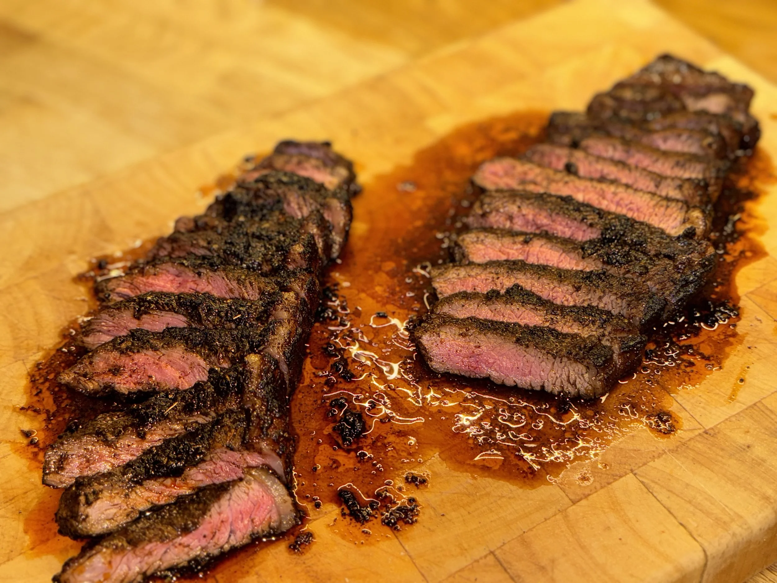 Dry the steaks with a kitchen roll. Rub the spice mix over the steaks and put to one side.